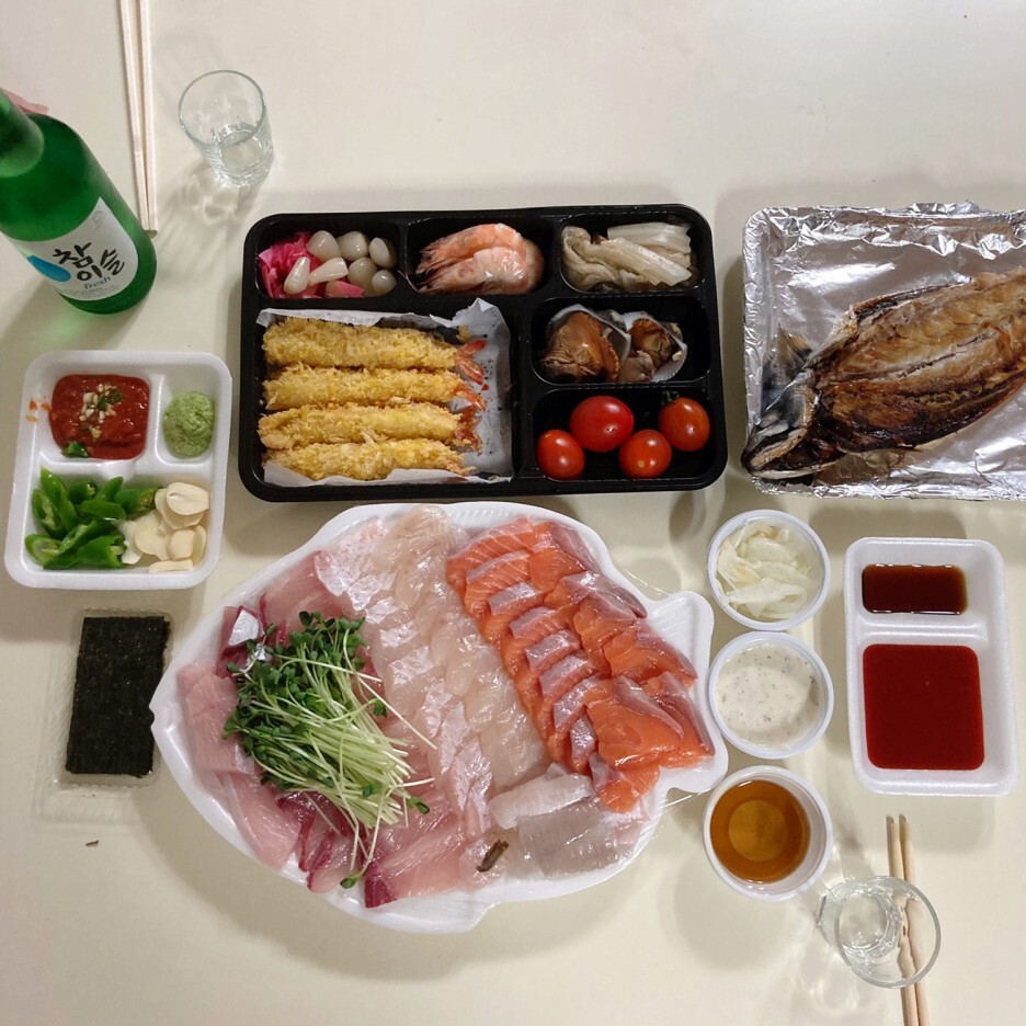 그래서 저희는 광어랑 연어랑 대방어를 주문했답니다~